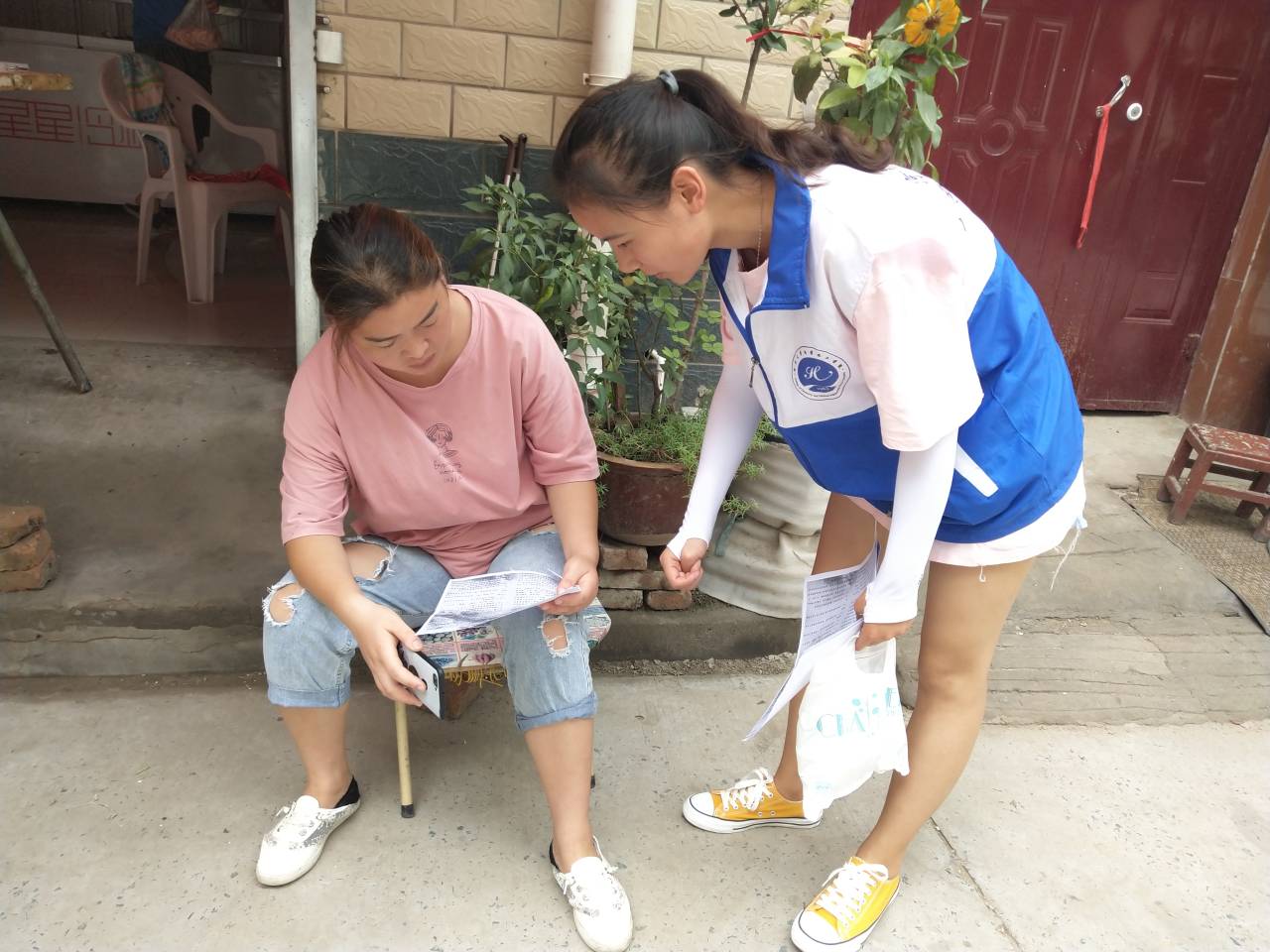 8月5日下午,化之采团队来到土城新街向当地村民展开化学知识科谱宣讲及化学知识了解度调研。来到土城新街后,团队成员通过上门走访开始展开宣传。了解到我们的来意之后,村民们对我们的宣讲很是欢迎。团队成员以生活中的化学为着眼点,向村民们讲解一些生活中常见的化学现象,使村民切深感受到化学已深入到我们生活中的方方面面。烧水壶用久了壶里往往有一层白色的水垢,用醋可以很好的去除;用5%的盐水预先浸泡有颜色的衣服,可以使衣服不容易掉色……这些生活中的化学小知识对村民进行讲解,听完我们的讲解,村民们很有感触,他们非常感谢我们为他们纠正了生活中的一些错误做法,团队成员也是满满的自豪感。