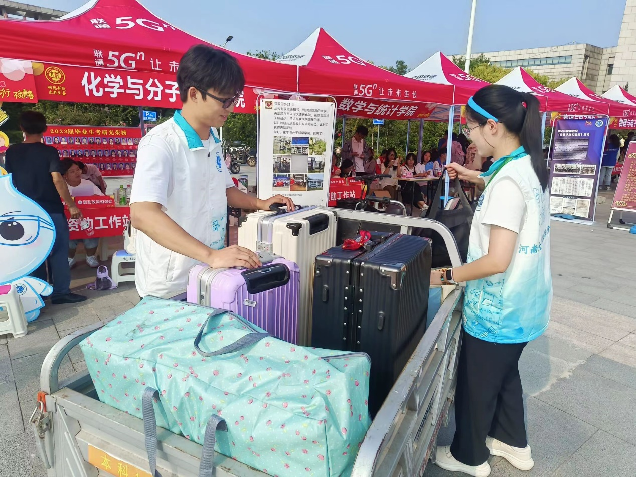 制定了详细的迎新工作方案。各部门各司其职,统一协作,为迎新工作做了充足的准备。此次迎新点设立了校园卡发放组、资助工作站、档案组以及宿舍迎新组四个工作小组,旨在为新生营造一个有序的报到环境。学院还设立了家长休息区,准备了纯净水,供家长消暑休息。志愿者同学们耐心地为新同学们解疑答惑、提供帮助,做到了细致周到,热情大方,展现了色中色