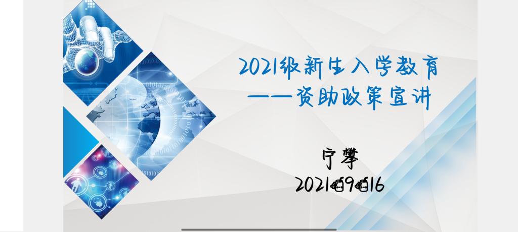 于9月16日上午举行线上资助政策讲解会议。会议由学院资助负责人、18级辅导员宁攀老师主持,学院全体新生参加会议。