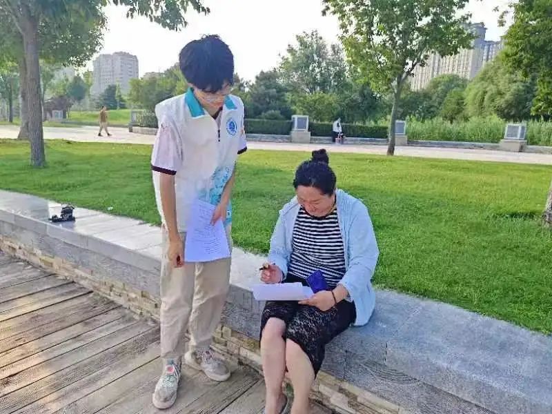 正值烈阳,游玩佳时,开封西湖的沙滩上游客熙熙攘攘。队员们在景区周围向游客们分发了“文明旅游”“低碳生活”相关的调查问卷,与他们进行深入交流,旨在倾听大家对于如何在日常生活中切实保护环境、遵循社会公德的宝贵意见。同时,我们也积极倡导每位游客能够自我反思,以更加文明的方式享受旅行的乐趣。