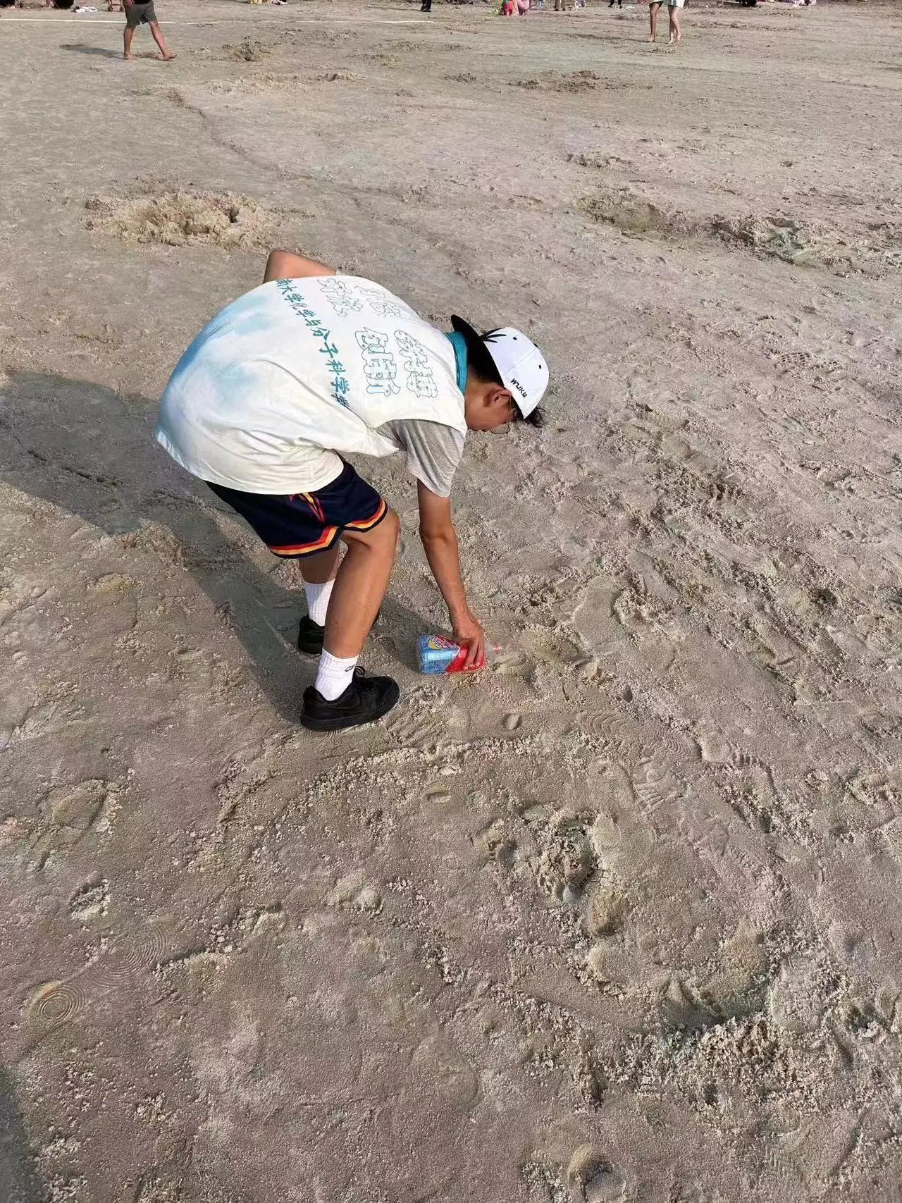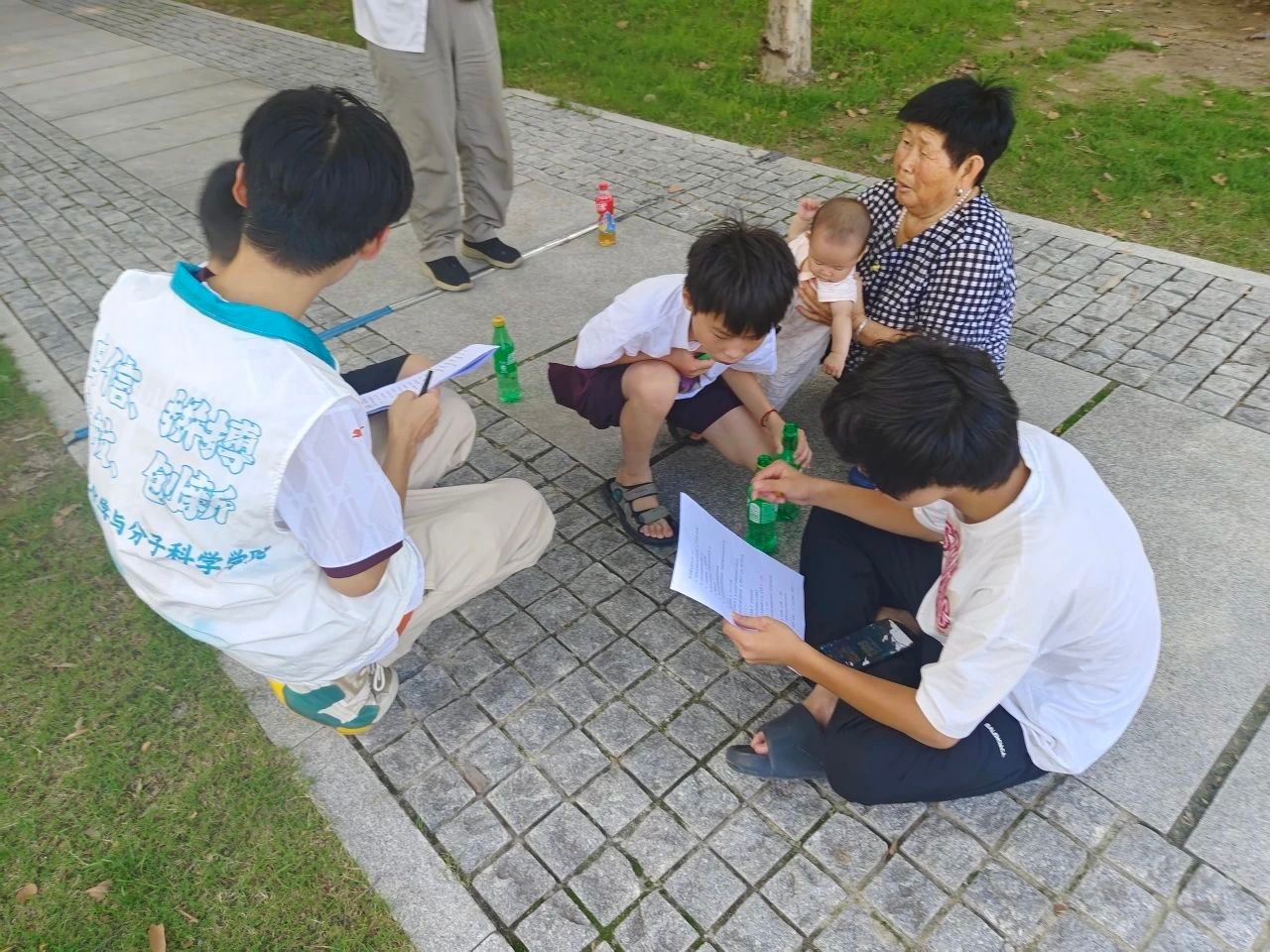 与此同时,队员们还在西湖沙滩上开展了“化学科普摆摊”活动,展示了一些简单易懂的化学小实验,吸引力来来往往不少游客的注意。队员们在普及相关化学知识后,又开展了化学小知识问答活动与游客互动,积极解答一些小朋友的问题,在他们心中种下探索化学的种子。少年是祖国建设的未来接班人,化学的种子某天或将在祖国建设中成长为参天大树。