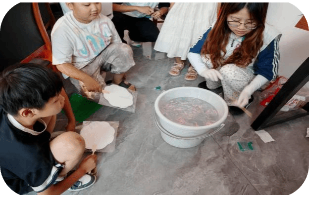 7月3日下午,为推动非遗文化传承,发挥化学学科特色,十三位小朋友在志愿者的带领下,亲手制作漆扇,感受传统工艺的魅力,让小朋友们在动手实践中感受传统文化与现代科学的奇妙碰撞。