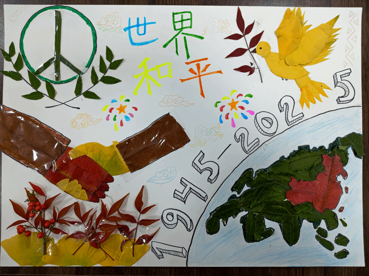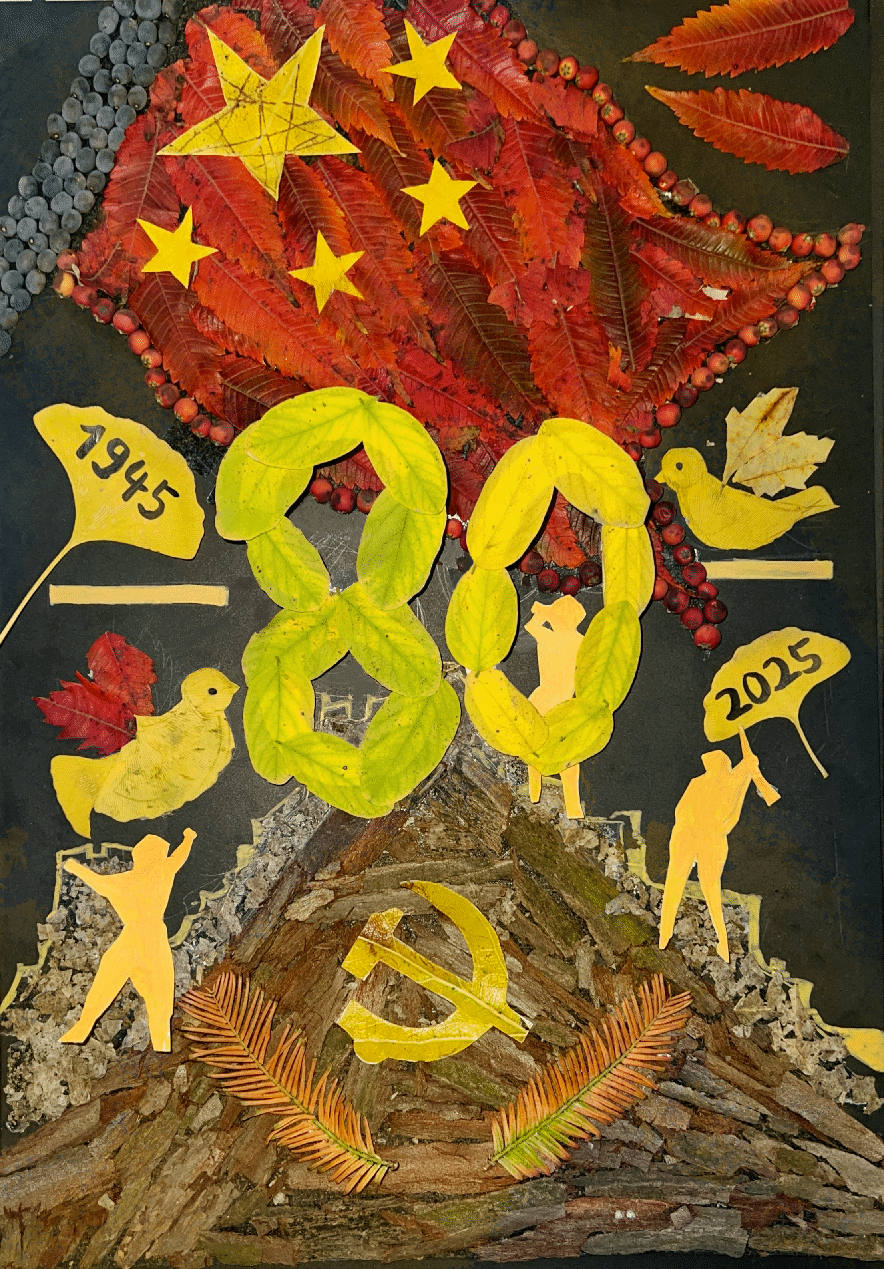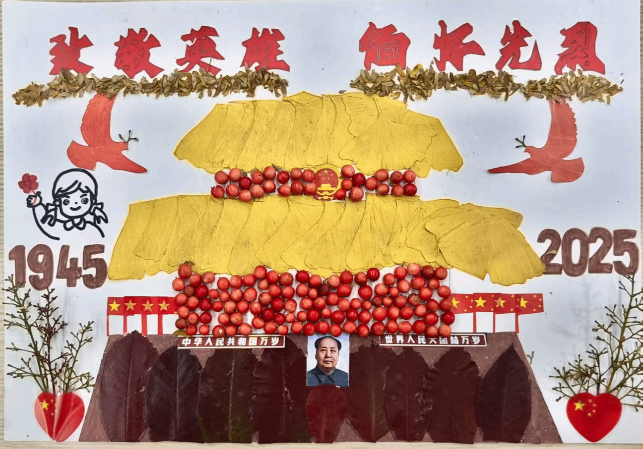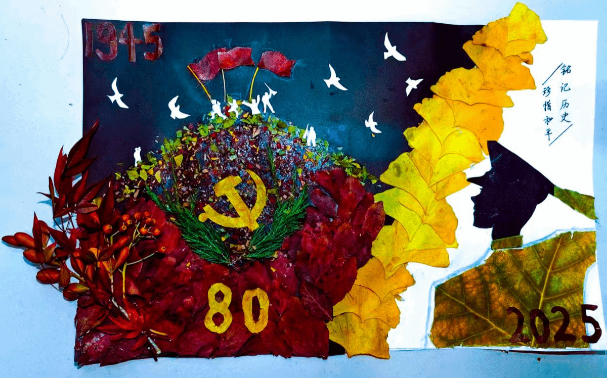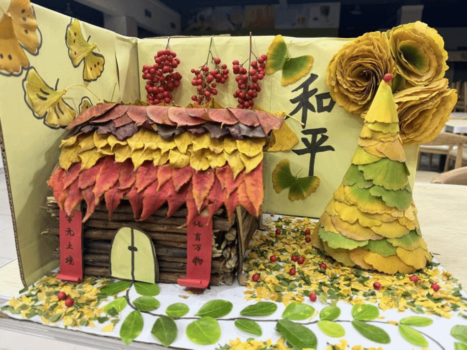此次活动以“金秋盼落叶,和平映山河”为主题,鼓励师生利用校园内的落叶、枯枝等自然素材,通过剪、贴、拼、叠等手法,创作出兼具思想性与艺术性的和平主题作品。同学们热情高涨,纷纷走进校园角落收集素材,有的以落叶为笔勾勒安宁图景,将白鸽、橄榄枝等和平符号与铁塔湖、明伦堂等校园风光相融,定格岁月静好;有的以自然为卷讲述和平愿景,用不同形状、颜色的叶片组合成携手同行的身影、守望相助的瞬间,传递对安宁生活的珍视;还有的结合专业特色,将分子结构、生态循环等化学与自然元素创意转化,以理科生的独特视角诠释“万物共生、和平共处”的深层内涵。作品题材丰富、构思新颖,每一幅都凝聚着创作者对和平的向往与守护,彰显了色中色