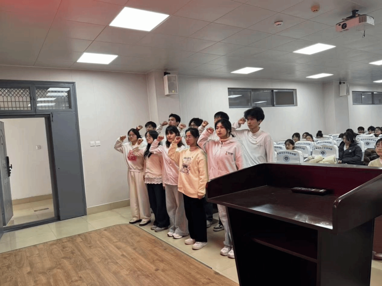 随后,田梦在仪式上致辞。她首先向所有新发展团员表示热烈祝贺,并指出,共青团是党的助手和后备军,是青年学习中国特色社会主义和共产主义的大学校。她寄语全体团员青年,要牢记入团誓词,坚定理想信念,筑牢信仰之基;要珍惜团员身份,自觉加强理论武装,积极参与团学活动,在服务集体、奉献社会中锤炼本领、实现价值;要胸怀“国之大者”,将个人理想追求融入国家发展和民族复兴伟业,特别是在化学与分子科学领域,要勇于探索创新,立志科技报国,努力成长为有理想、敢担当、能吃苦、肯奋斗的新时代好青年,在全面建设社会主义现代化国家新征程中谱写绚丽的青春华章。