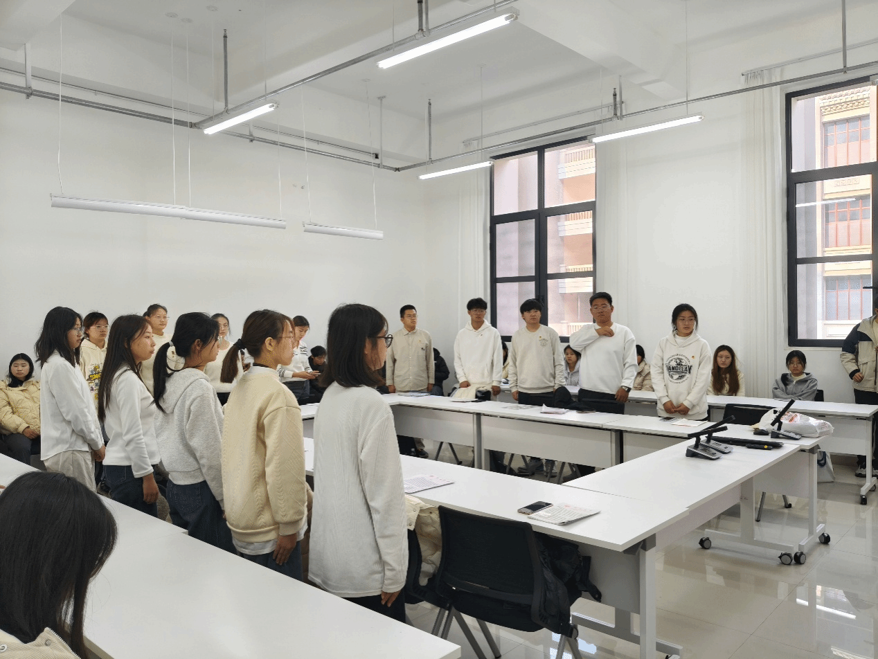 2025年秋季新发展团员入团仪式隆重举行。本次入团仪式采取线上与线下相结合的方式,团委副书记田梦、新发展团员、各班团支书及组织部部长在学院226会议室参会,2025级本科生辅导员王钏宇携2025级新发展团员在郑州校区线上参会,本次入团仪式由团委组织部主席孙子棋主持。