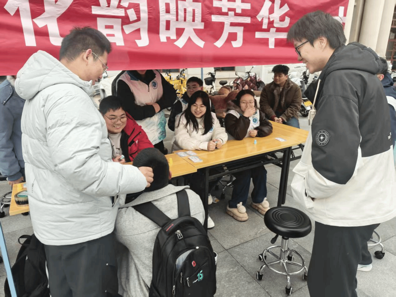 本次活动设置听歌识曲、数到二十、连词造句三大趣味闯关点位,同学们踊跃参与、热情高涨。听歌识曲环节,经典老歌与潮流热曲交织,同学们凝神聆听、精准抢答,瞬间点燃现场氛围;数到二十游戏中,同学们与志愿者你来我往、脑力博弈,每一步选择都缜密思考,尽显智慧与应变能力;连词造句点位处,大家巧用随机抽取的词语,创作出或温柔治愈、或俏皮有趣的语句,让文字碰撞出创意火花。成功闯关的同学可收集印章,解锁幸运抽奖资格。抽奖环节中,一系列精美奖品陆续送出,让甜蜜与温暖伴节日同行。
