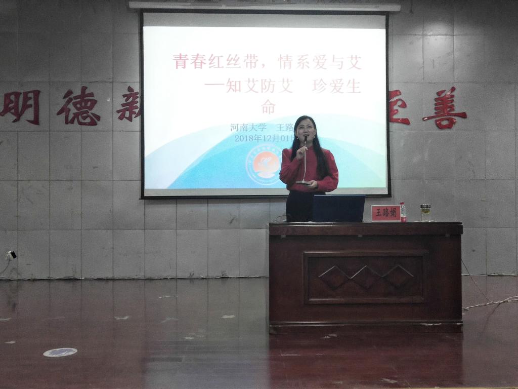 于圆形报告厅举行了“青春红丝带,情系爱与艾——知艾防艾,珍爱生命”专题讲座,院党委办公室主任王路娟主讲。