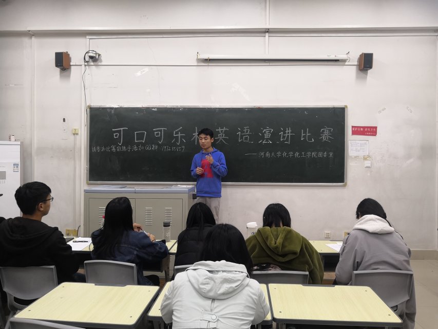 于10月28日晚在教学楼7101教室举办“可口可乐杯”英语演讲比赛之院内选拔赛。此次比赛2016级、2017级、2018级学生踊跃参与,团委学生会主席王兰旺、团委副书记王钰、新媒体中心主任司超男等主席团成员出席本次比赛并担任评委。