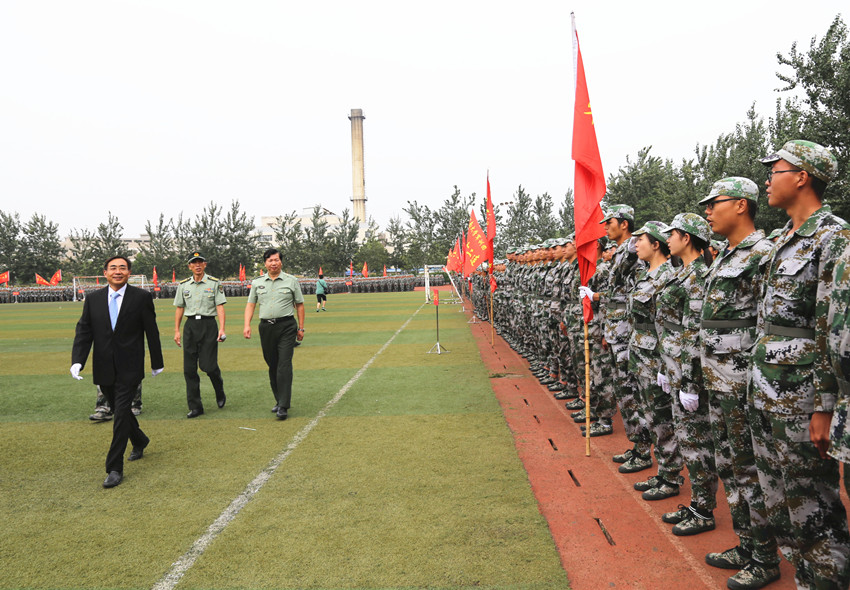 庄严的国歌拉开大会帷幕,校长宋纯鹏对我校73个学生军训连队进行检阅。郄希发大校一声令下,分列式正式开始。色中色