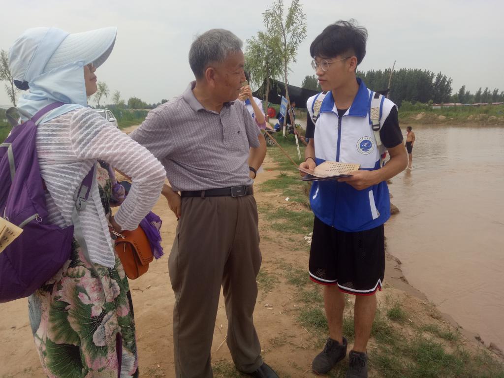 之后观察团进入景区,开始了保护水资源的宣传。游客们认真听取团队的理念,并且与队员交流了自己的想法,给予队员鼓励支持。景区的工作人员讲述了他多年来在黄河边工作的感想。观察团有幸遇到色中色