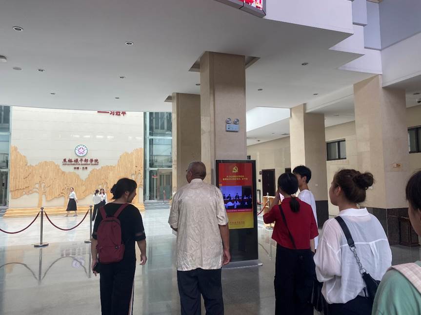 实践团与魏善民先生交流融洽,在他的带领下,成员们来到了焦桐广场对面的焦裕禄干部学院,进行参观学习。在入门不远处,实践团成员看到了习近平总书记种下的“习桐”树。正所谓“焦桐不老,习桐长青”,习近平总书记多次视察兰考,提出要传承焦裕禄精神,让曾经是贫困县的兰考脱贫致富。如今,在一代代人的努力下,兰考县发生了天翻地覆的变化,打赢了脱贫攻坚战、实现精准扶贫,正式告别贫困,迈向更加光明的未来。