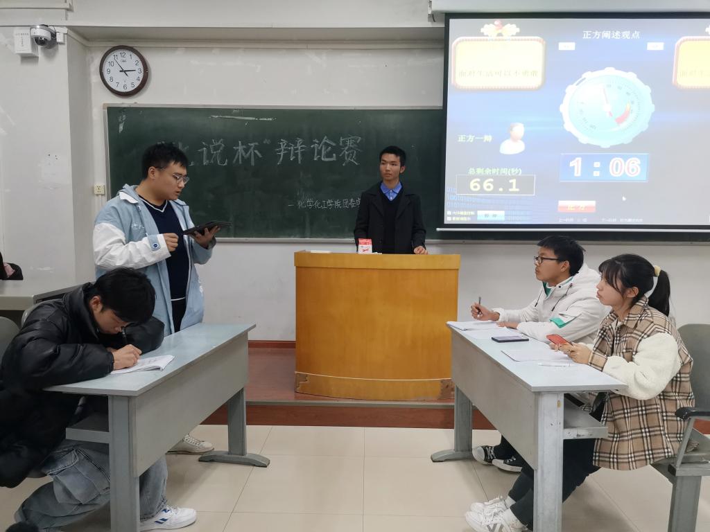 26日下午两点,“化说杯”初赛在7304教室拉开了序幕。初赛以2V2的方式进行,包括陈述和对辩两个环节,并随机分配每组的辩题和所持正反方。
