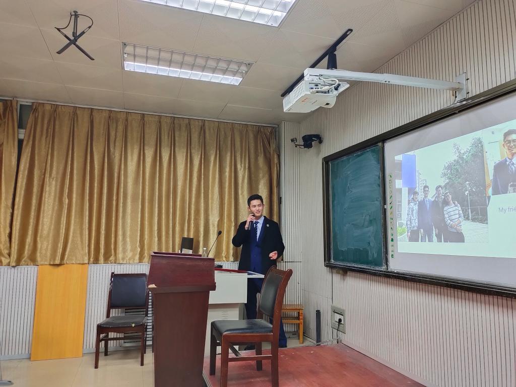 他鼓励大家走出校园拓宽眼界、突破自我,希望同学们去不同的环境下树立更全面的世界观,为今后发展创造更多机会。