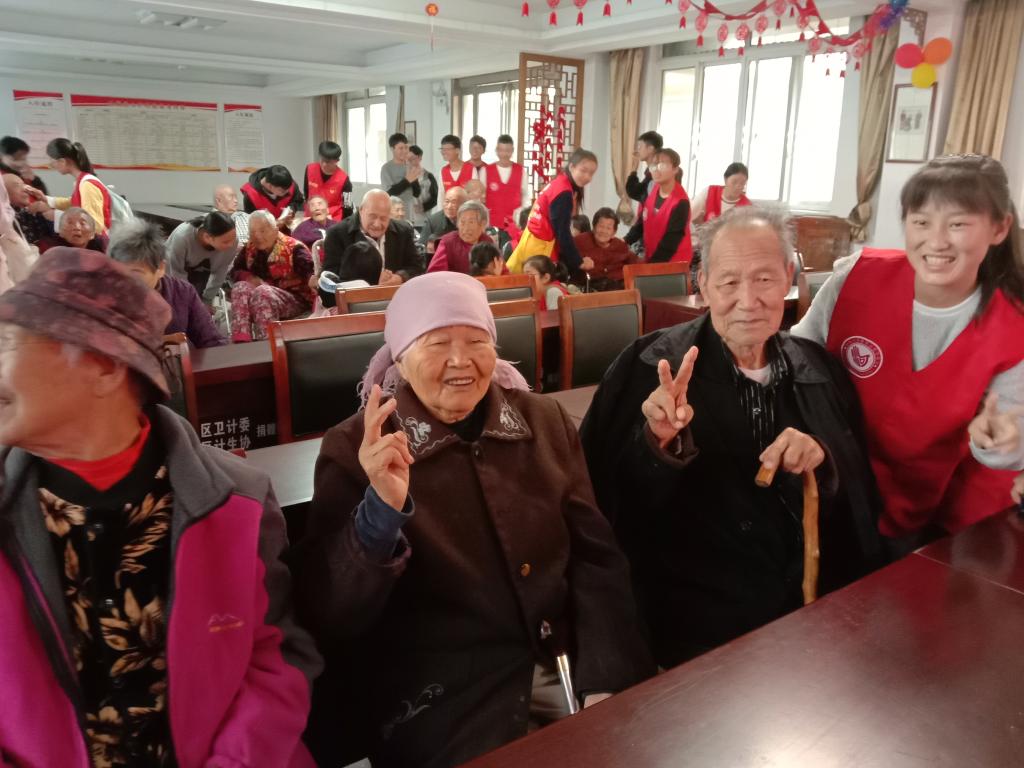 三点钟左右,爷爷奶奶们陆续都醒来了,志愿者们为他们穿衣,扶他们下楼,为爷爷奶奶表演戏曲,小品,还有爷爷奶奶们非常喜欢的广场舞等节目,爷爷奶奶也情不自禁的拍着拍子。爷爷奶奶观看节目的的同时,志愿者还贴心地准备了水果等食物。节目最后以红歌串烧结尾。虽然志愿者技艺不精但爷爷奶奶们都很开心也给出了很高的评价,表示他们非常喜欢。能为他们带来欢乐,志愿者们表示非常开心。节目后志愿者和爷爷奶奶合影留念,记下这幸福的时刻。