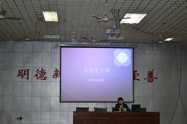 事故防范于未然,安全重之于泰山。为进一步做好校园安全教育工作,强化学生安全防范意识,4月12日中午,2013级辅导员马洁在色中色