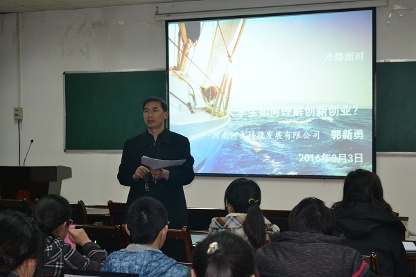 3月3日晚,由河南河大科技有限公司总经理郭新勇主讲的挑战杯团队指导讲座于色中色