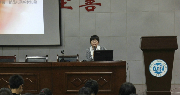在学院二楼学术报告厅举行心理健康知识讲座。13级辅导员马洁老师及14级辅导员吴玉峰老师亲自到场为同学们进行讲解,2013级和2014级全体学生聆听讲座。