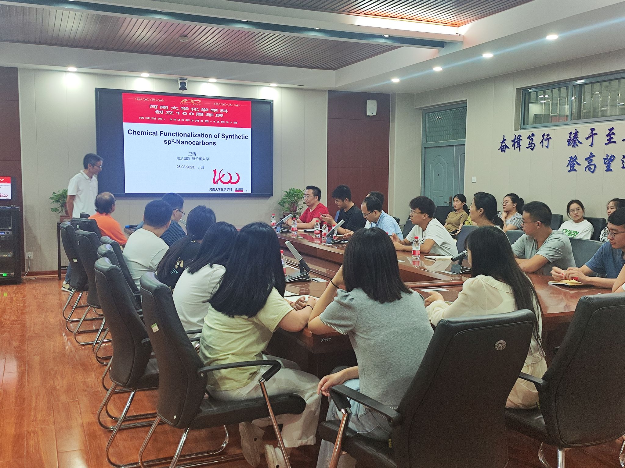 邀请,德国埃尔朗根-纽伦堡大学卫涛博士在学院220会议室进行了一场题为“Chemical functionalization ofsynthetic sp2-nanocarbons”的学术报告。本次报告由副院长张磊主持。
