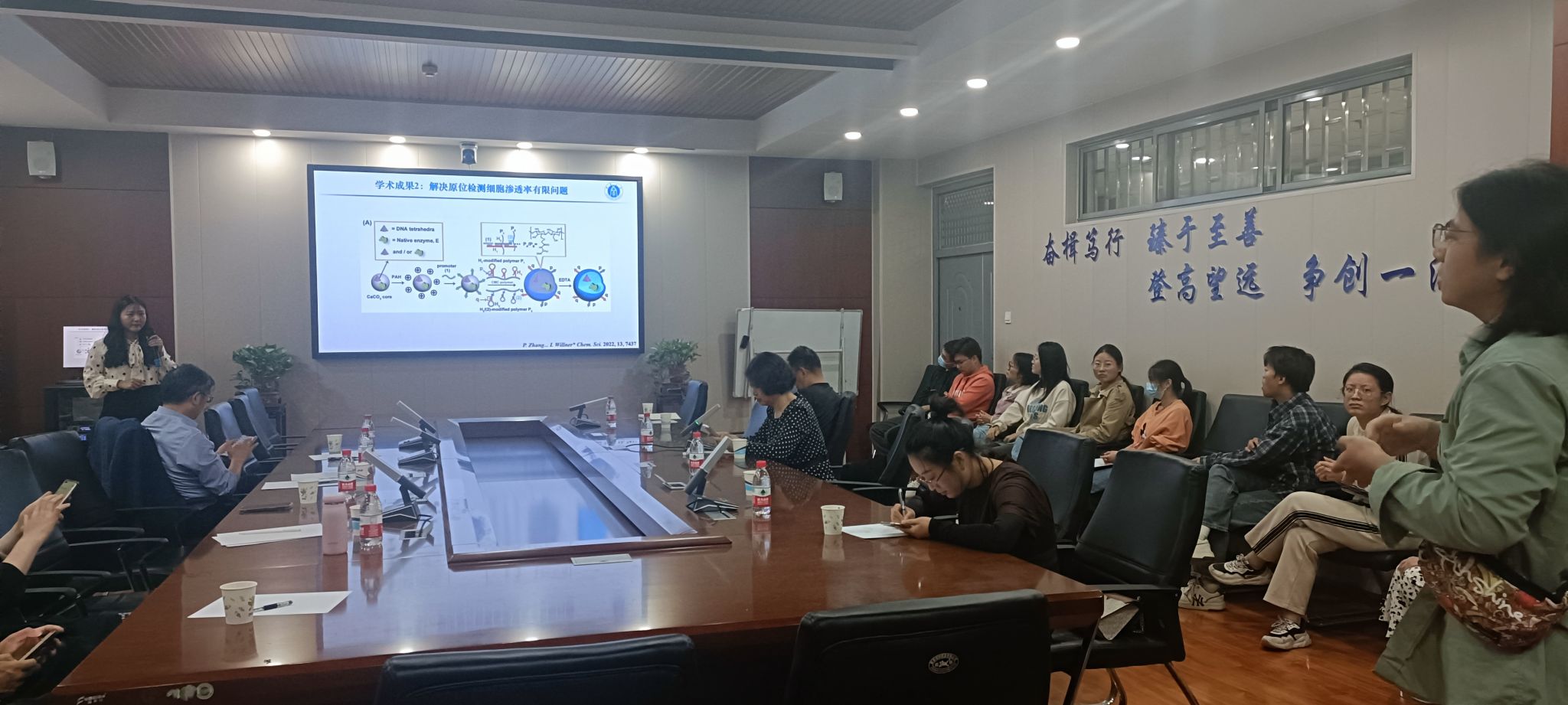 报告中,张璞教授向师生们介绍了其课题组围绕核酸纳米技术实现高灵敏、快速便捷microRNA检测的研究进展。详述其课题组围绕DNA核酸纳米技术解决传统生物传感器反应动力学不足、细胞渗透性低以及多组分检测精度不高的等microRNA传感问题。报告结束后,她与参会师生进行了深入交流,并全面回答了大家提出的问题。