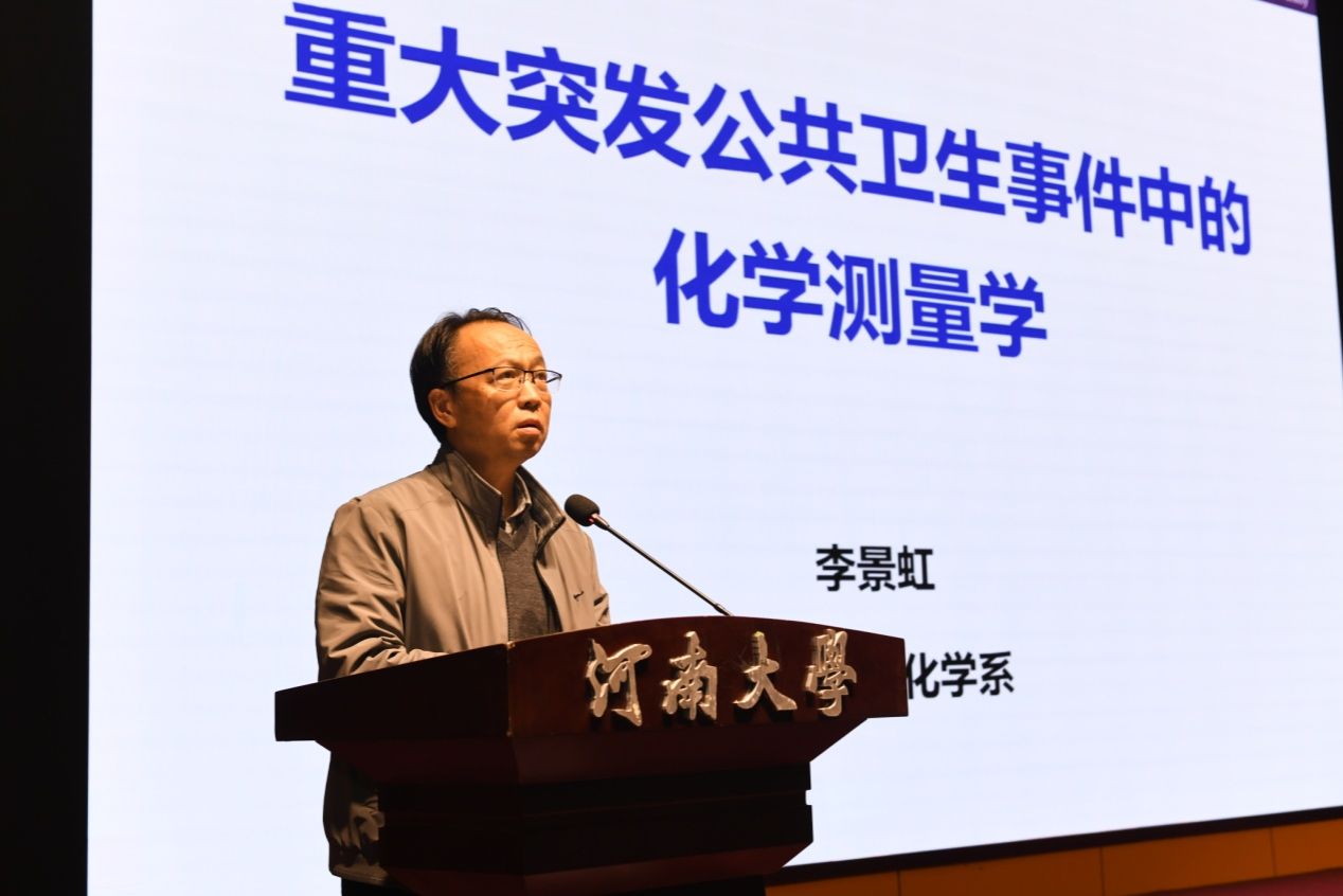 李景虹院士以《重大突发公共安全事件中的化学测量学》为题,深入浅出地讲述了化学测量学及其在重大突发公共卫生事件的过程中发挥的作用。他介绍了课题组近年来在“非典”疫情、新冠肺炎疫情、猴痘疫情等烈性传染病的疫情防控过程中所做的工作,包括发展了“非典”病毒抗原双标记免疫层析检测技术,开发了新冠病毒单碱基分辨核酸快速检测技术与仪器,发现了猴痘病毒基因的核酸二级结构进化特征等,这些为重大突发公共卫生事件的疫情防控做出了积极贡献。在报告会的提问环节,李景虹院士与师生积极互动交流,气氛活跃。国家杰出青年基金获得者、色中色
