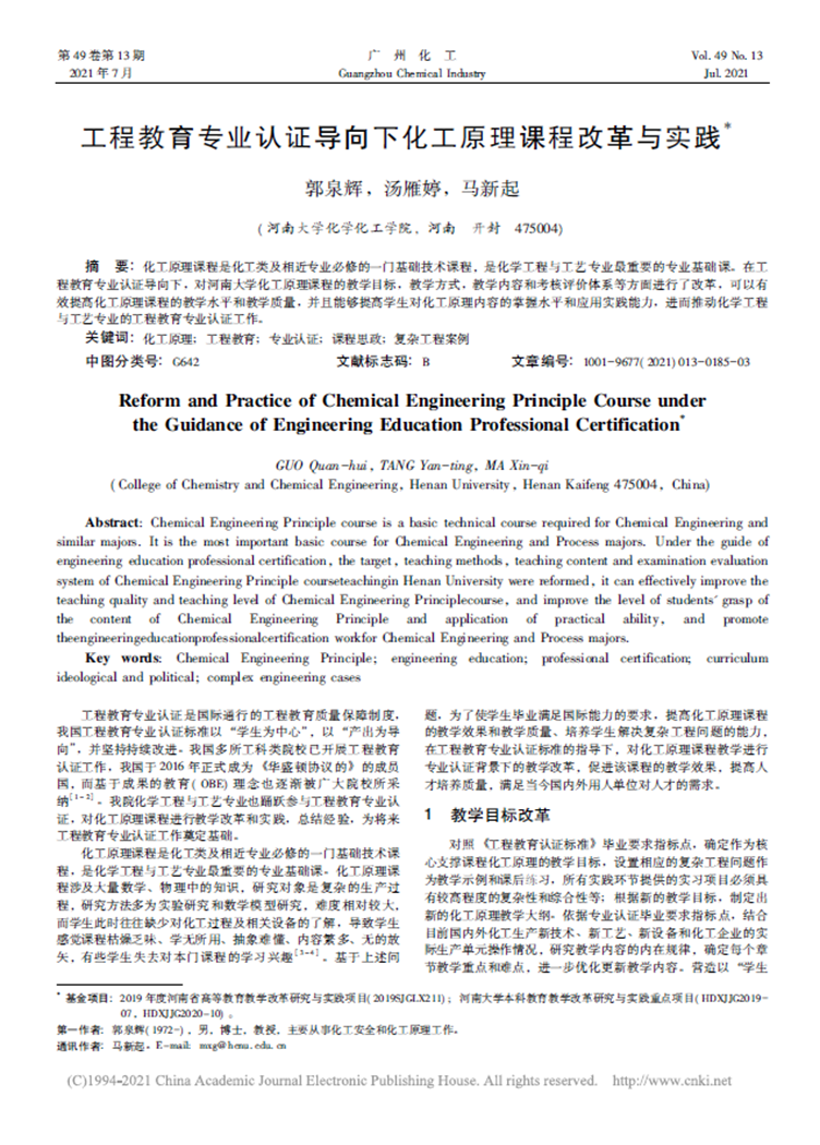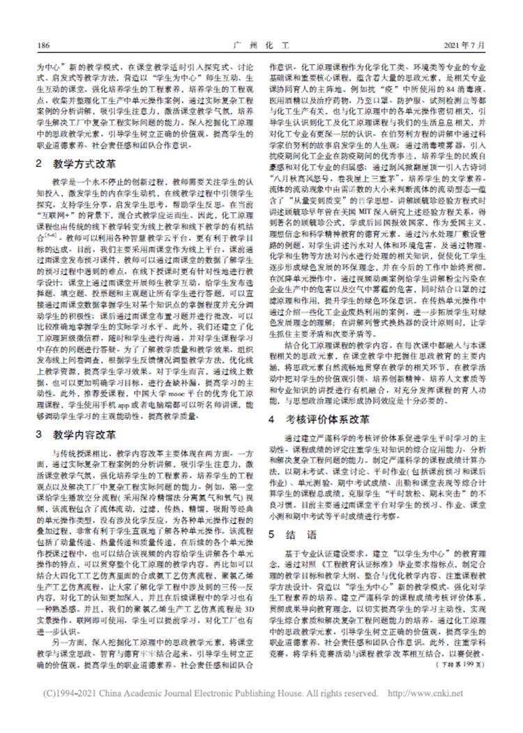 工程教育专业认证导向下化工原理课程改革与实践