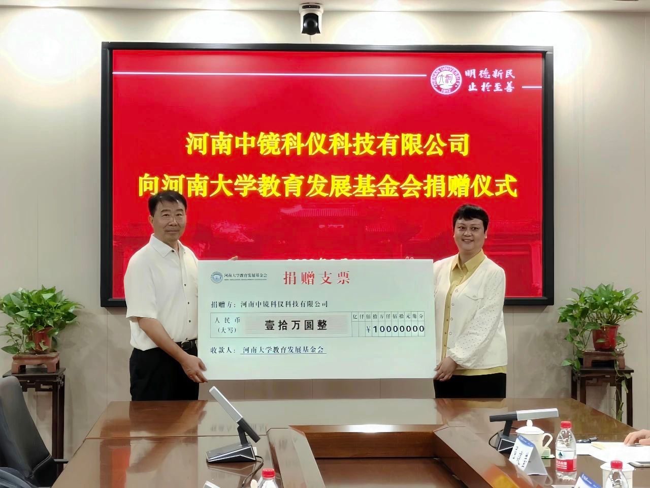 河南中镜科仪科技有限公司董事长1984届校友任江鸣捐赠十万元
