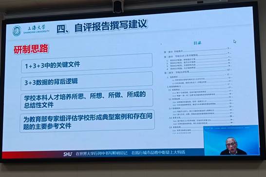 2024年3月21日下午,学院组织系主任、教研室主任和部分专业课教师参加了学校教务处转播的审核评估专题培训讲座,本次专题培训由麦克思公司组织开展,主讲嘉宾为上海大学辛明军教授。辛明军从审核评估背景、校内自评工作要点、校内自评实施方案设计、自评报告的撰写思路四个方面对审核评估工作进行了全面的阐释。同时,辛明军还结合上海大学本科教育教学审核评估工作的实际,介绍了审核评估工作的要点和注意事项。此次专题培训加深了学院教师对审核评估自评报告内容的理解,也提高了老师们对审核评估期间的各项工作要求和任务的认识。